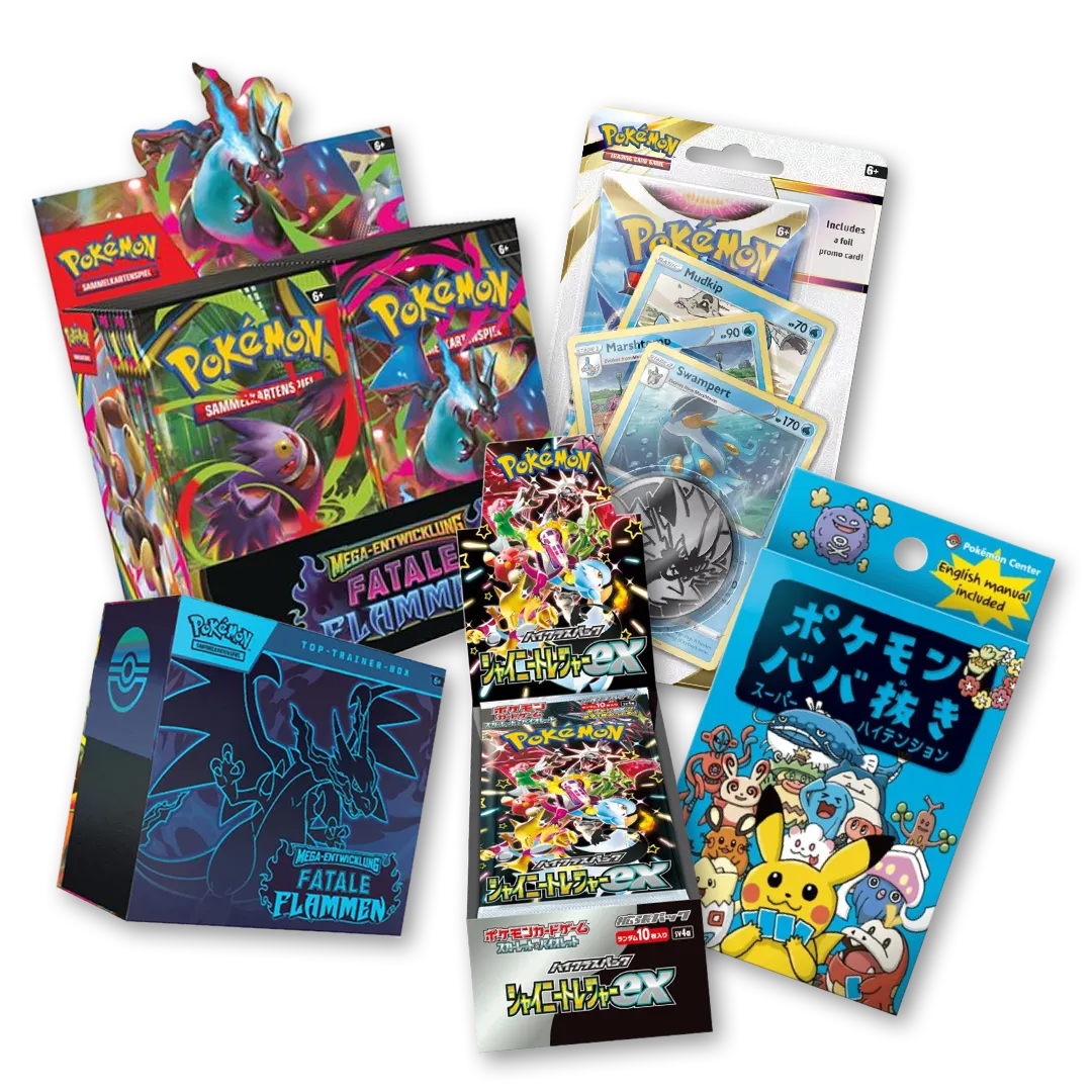 Tauche ein in die Welt der original Pokémon TCG Sealed Produkte – ungeöffnet, authentisch und voller Spannung. Ob Booster, Displays, Elite Trainer Boxen oder Special Collections: Hier bleibt alles versiegelt, genau so, wie es Sammler und Spieler lieben.